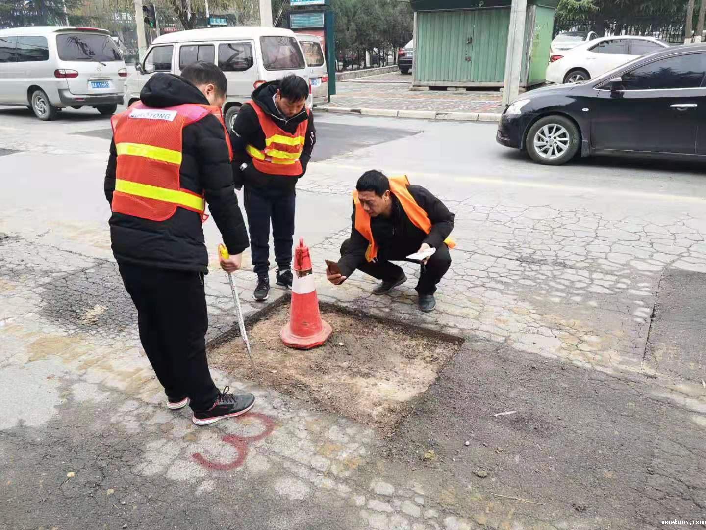 春节将至,为了给群众营造一个良好的出行环境,荥阳市城市管理局组织施工人员冒严寒,对市区道路进行紧急修复。