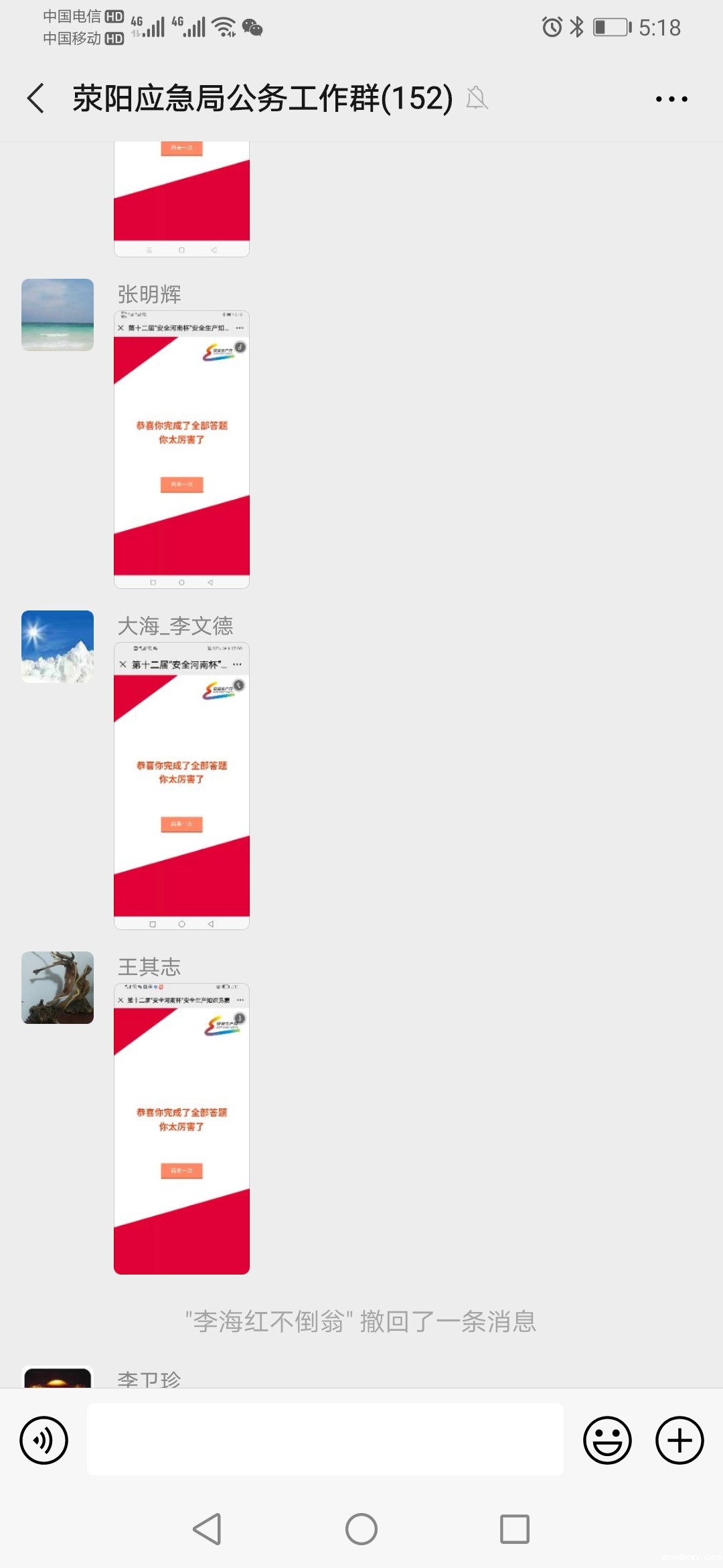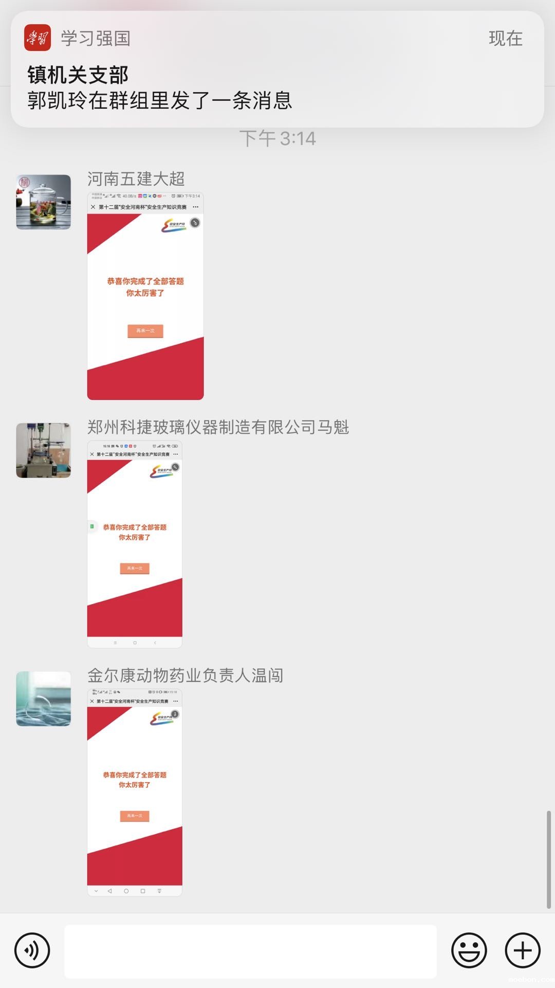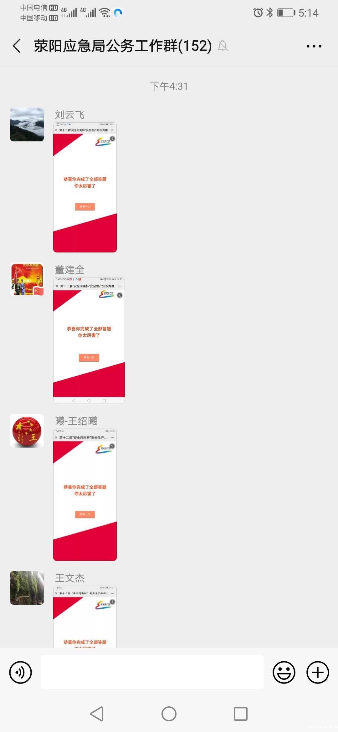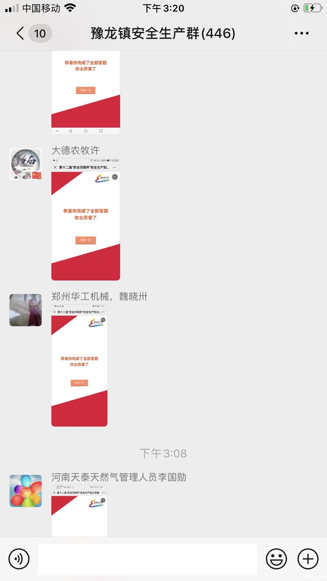 6月2日,荥阳市应急管理局、豫龙镇政府通过微信群组织机关干部、企业积极参加“安全河南杯”安全生产知识竞赛网上答题活动。