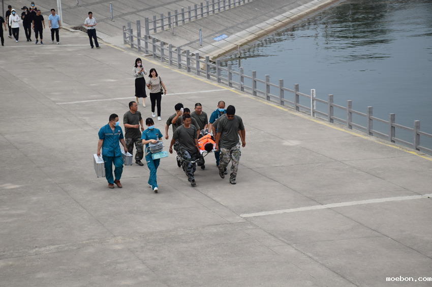 演练背景模拟我市出现较大降雨,河王水库水位即将超汛限水位,管理所巡查员在巡查时发现后坝坡主河槽左岸有一处管涌险情。演练内容主要包括:水库大坝安全巡查、险情报告、应急供电、紧急泄洪、大坝管涌险情抢护、水库库区安全巡查和群众救护六个科目。上午9时,指挥长宣布演练正式开始!应急抢险突击队精神抖擞,行动迅速,巡查大坝认真有序,大坝后坝坡管涌险情处置快速有效,水上救援紧张有序,应急供电反应迅速,稳定高效。