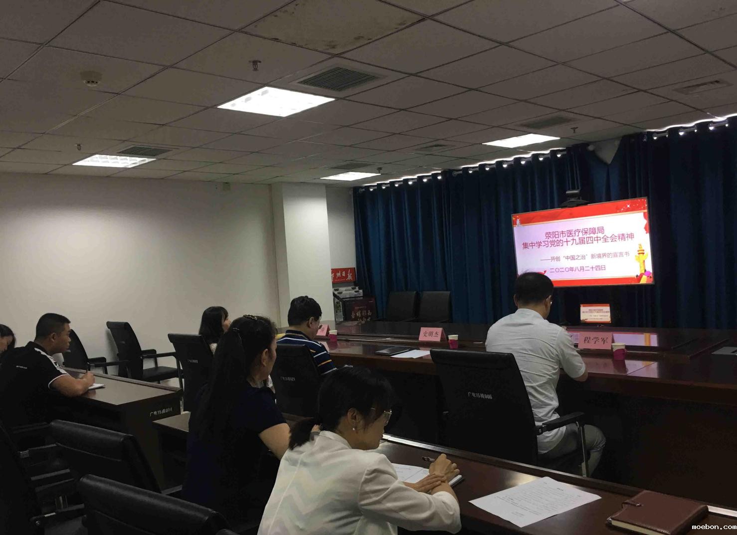 为深入学习贯彻党的十九届四中全会精神 ,领会习近平总书记在全会上的重要讲话精神 , 8月24日到8月26日,市医保局全体干部职工在会议室开展学习贯彻党的十九届四中全会精神视频集中培训 。