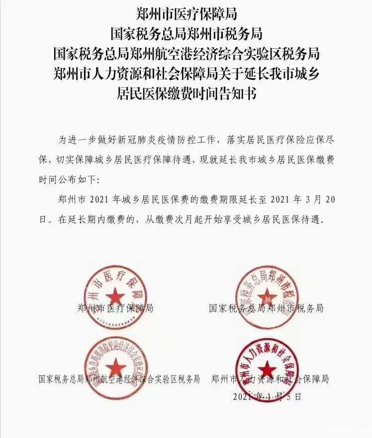 为进一步做好新冠肺炎疫情防控工作,落实城乡居民应保尽保,切实保障广大群众医疗保障待遇,日前,根据郑州市通知精神, 荥阳 市202 1 年城乡居民基本医疗保险的缴费期限延长至3月20日,在延长期内缴费的,从缴费次月起开始享受城乡居民医保待遇。