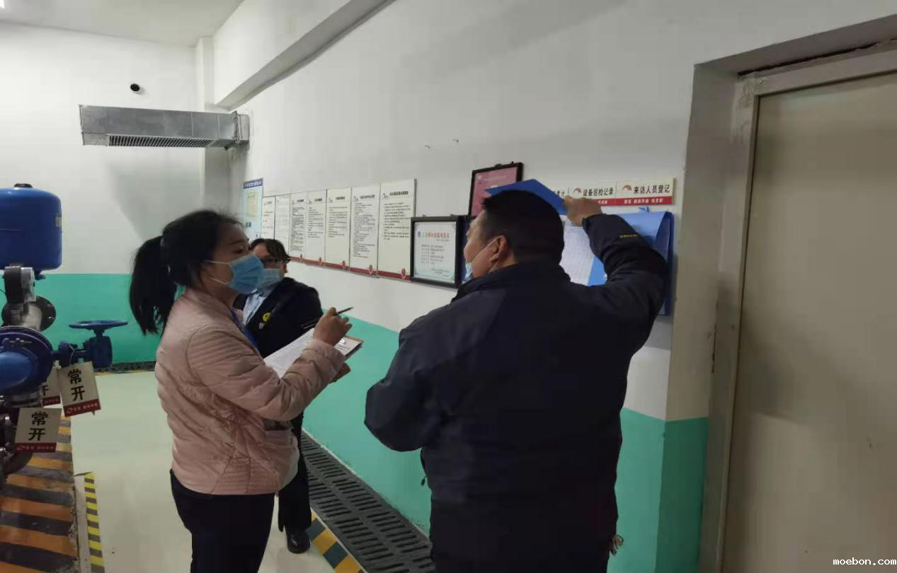 春节将至,为进一步保障和加强全市二次供水的安全规范管理,让全市人民度过一个平安、祥和的春节。2月3日上午,由荥阳市城市管理局牵头、市卫健委、自来水有限公司组成的二次供水联合检查组开展2021年2月份全市二次供水管理情况和水质的例行随机抽检工作。本次联合检查组共抽检德润华庭、海天国际、金龙紫东郡、冯寨社区、金源新城共5家二次供水小区。并委托郑州润博水质检测公司全程进行水箱水样或居民龙头水样采集和余氯指标的现场检测,经检测公司检测人员现场仪器设备的初检,5家小区的二次供水水样余氯指标检测结果均符合GB5749-2006限值。检查组重点查阅生活水泵房安全防护、管理人员健康证、水箱一年两次清洗消毒、水质一年两次检测、消毒设备的运行维护等资料档案。