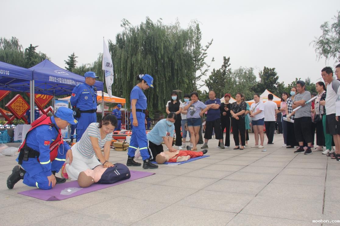 活动现场通过播放安全生产宣传片、设立咨询台、展出安全宣传版面、发放宣传资料等形式,向广大群众宣传生产安全、消防安全、用电安全、燃气使用安全、交通安全、防汛安全等方面知识。荥阳蓝天救援队进行了绳索装备、迷雾机、救生艇等应急救援装备展示,现场开展心肺复苏等应急救护技能培训及项目体验。