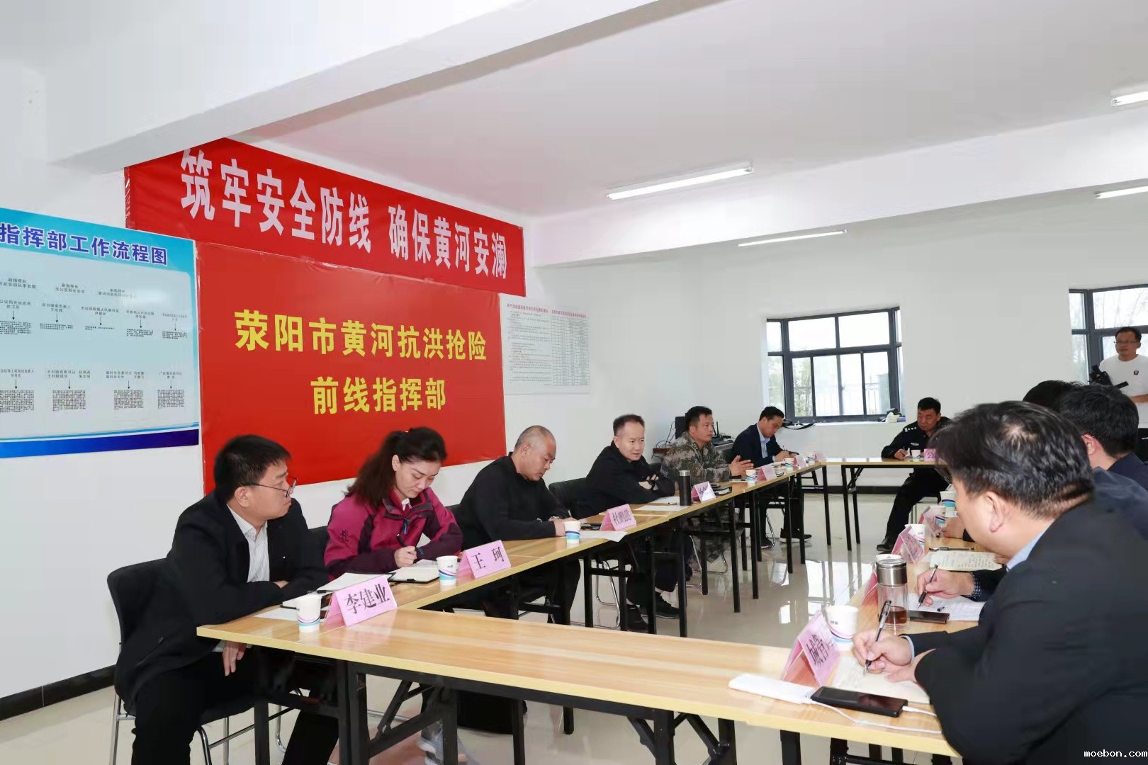 四是定岗定责,强化值守保障。按照防汛三级应急响应要求,严格落实领导带班和24小时值班制度,各副指挥长深入一线,靠前指挥,24小时驻守黄河抗洪抢险前线指挥部,统筹调动防汛力量、主持防汛会商、安排部署防汛工作。沿黄乡镇对进滩路口进行封闭、设卡,及时劝离进入工程范围内的无关人员。一线工程班全员上岗,各控导工程均安排一名科级干部驻守带班巡坝查险,重点巡查新修工程、靠主溜坝垛、畸形河势河段,密切关注水情、雨情、工情、汛情,确保险情早发现、早处置。