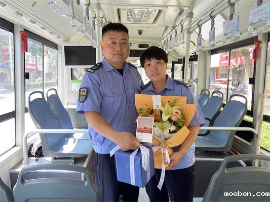 “云凤,七夕节快乐,送你一束花,这么多年你辛苦了。”刚结束了一趟运营任务在调度室休息的3路公交车长岳云凤愣了一下,接过鲜花感动地说:“谢谢老公。”趁着爱人谢建康打扫车辆卫生的间隙,岳云凤也将公司精心准备的七夕礼物送到谢建康的手里。谢建康说:“这么多年也是第一次给云凤送花,公司为了让我们方便照顾家里,让我俩同一条线路、跑同一台车,交接班的间隙还能见上一面,说上几句话,我早点接班她也能早点回去休息,夫妻嘛,相互体谅也是应该的,本来俺父母都在周口,平时很少回去,过年也是大年初一回去初二早上赶快回来,每天忙忙碌碌也没有给云凤过过啥节日,要不是这次公司给俺们准备了七夕礼物,还是没有机会给她过节日,真的特别感动、特别惊喜。”