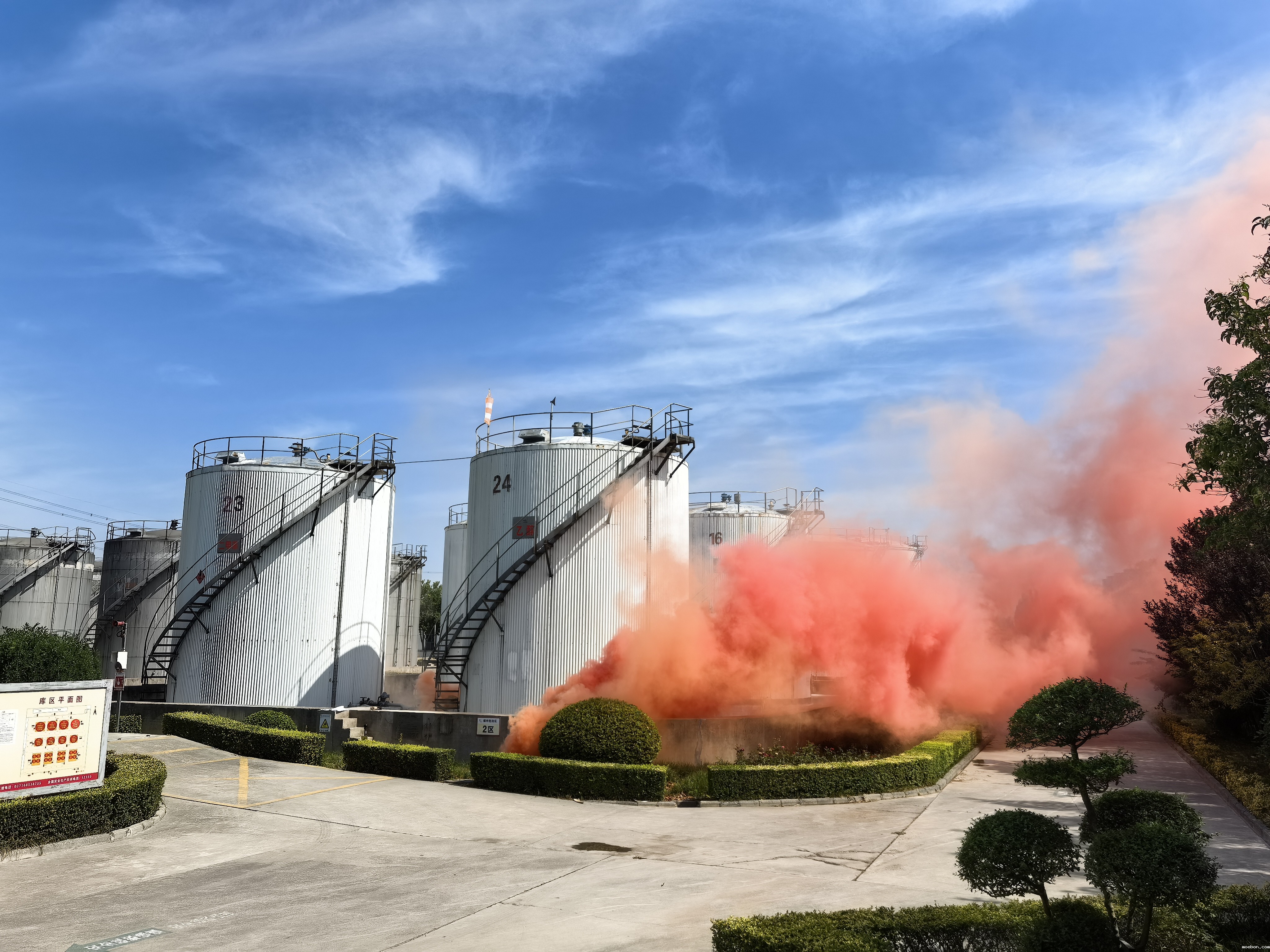 此次演练先后模拟了危化品运输车辆泄漏和危化品储罐泄漏引发火灾的紧急事故场景。“中控室,24#罐主管道阀门泄漏,请立即关闭24号罐紧急切断阀。”这是郑州八通实业有限公司巡检人员现场检查发现泄漏之后的请求,事故发生后,当班人员迅速组成应急处置小组,进行先期处置,切断泄漏源,控制事态发展。“紧急情况!快!快!24#罐泄漏的乙醇起火,无人受伤,请求支援”。公司立刻启动应急预案,警戒疏散组、现场救援组、通讯组、医疗救护组、物资保障组等救援组立即到位。