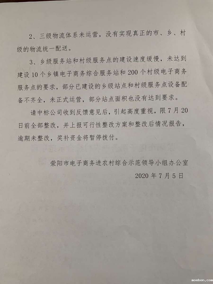 荥阳市电子商务进农村综合示范项目2020年上半年工作进展情况反馈