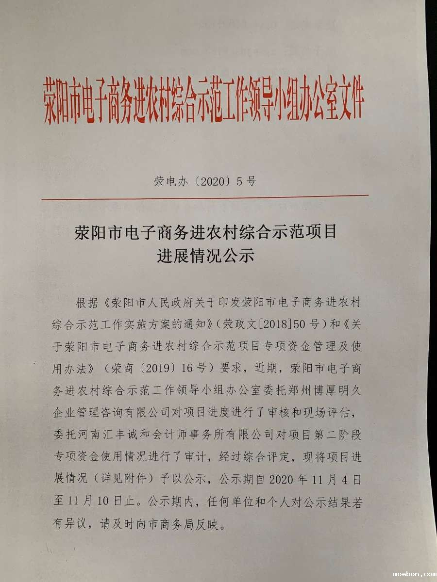 荥阳市电子商务进农村综合示范项目进展情况公示
