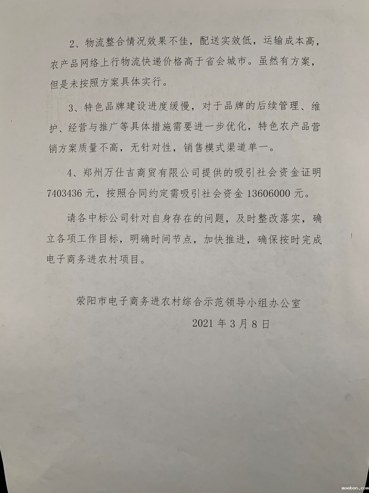 荥阳市电子商务进农村综合示范项目 2021年第一季度工作进展情况反馈