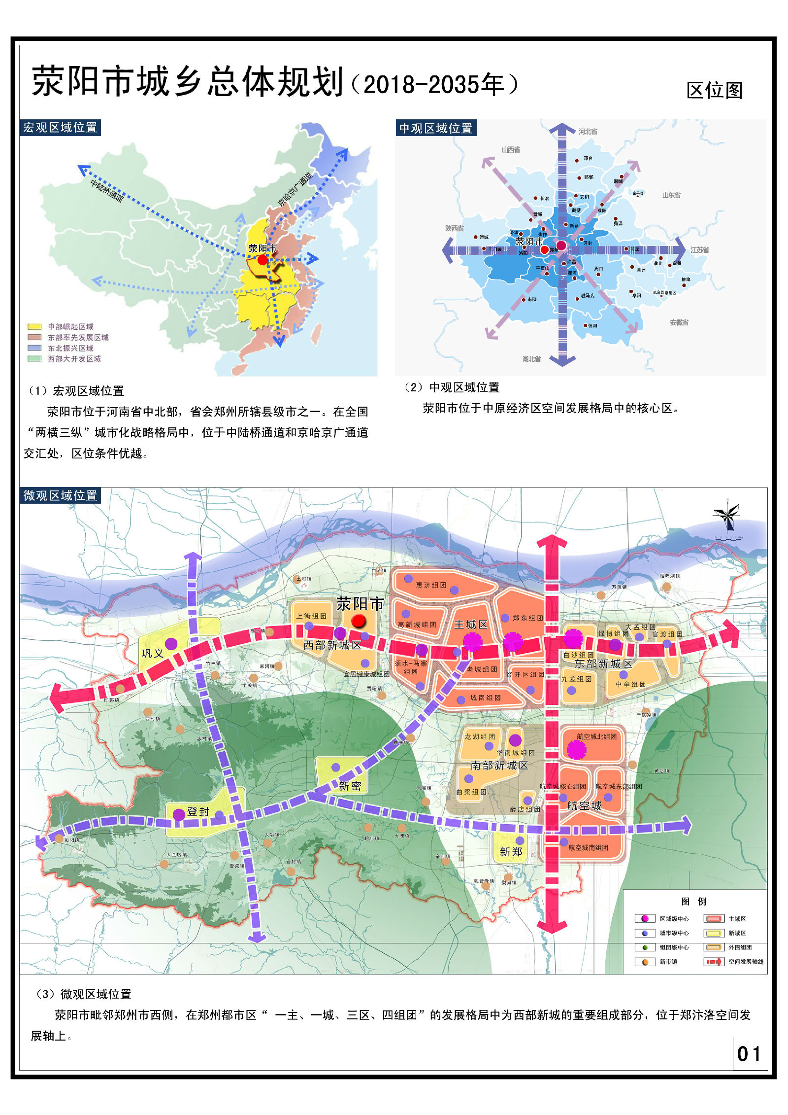 三心:一个郑上新区中心及两个荥阳市级中心。