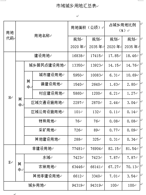 至2020年,中心城区人口规模50万人,城市建设用地面积控制在57.5平方千米,人均城市建设用地面积控制在115平方米。