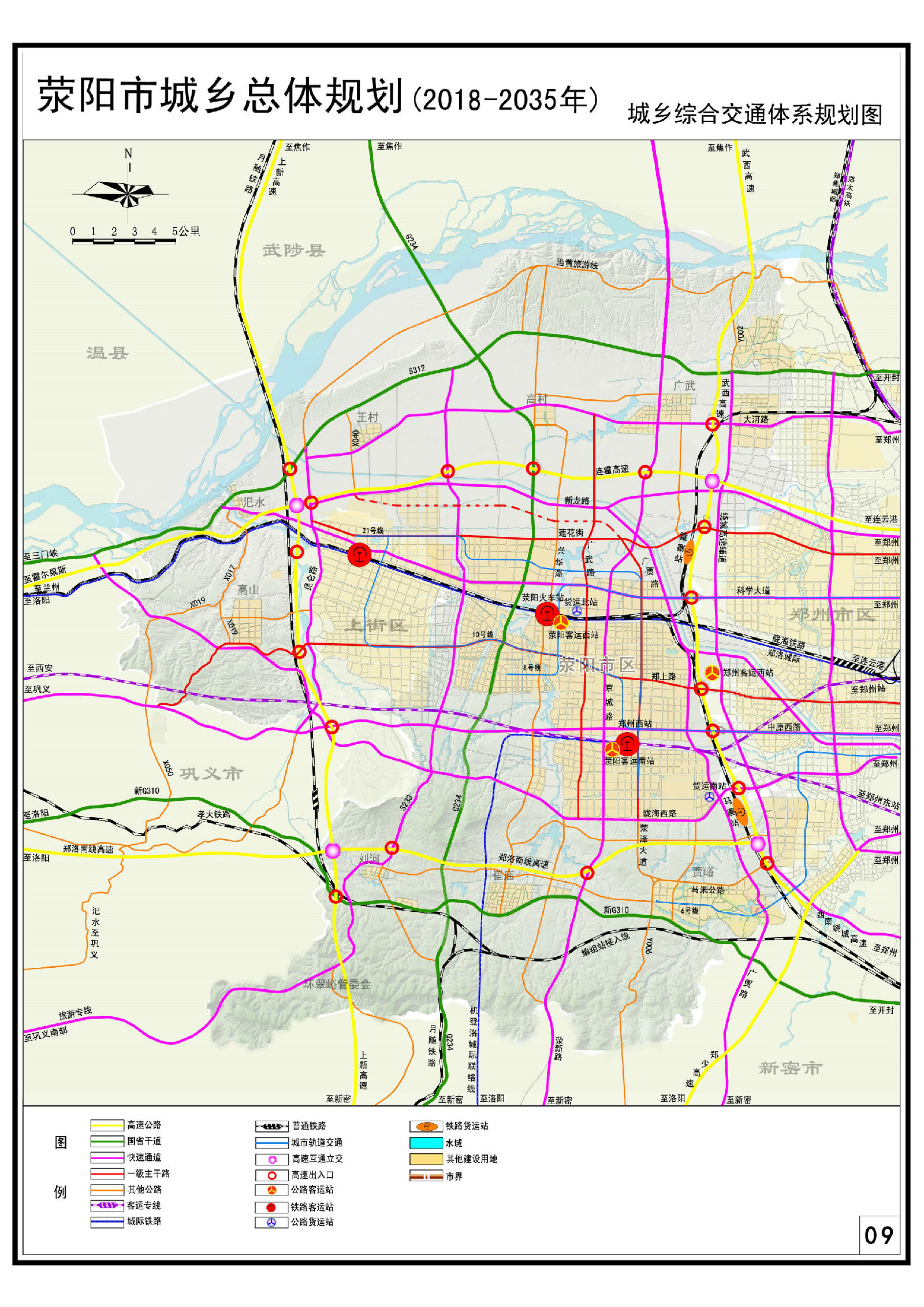 公路客运:结合郑州西站规划荥阳客运南站,面积6.75公顷;结合郑洛城际站规划荥阳客运西站,面积3.14公顷。