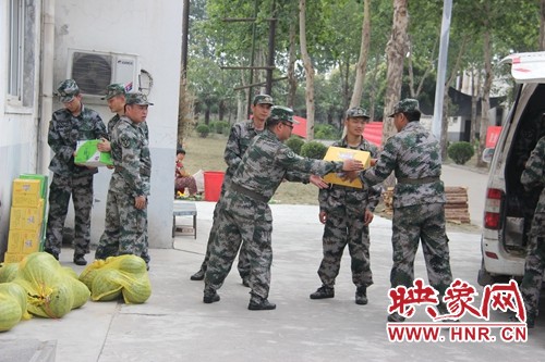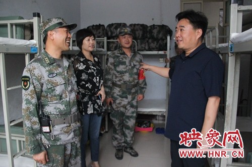 6月19日,荥阳市京城路街道党工委书记张荣耀,京城路街道党工委副书记、办事处主任陈秀珍,将满载西瓜、绿茶等降温物资车辆开到了荥阳市民兵应急连综合救援排训练现场。