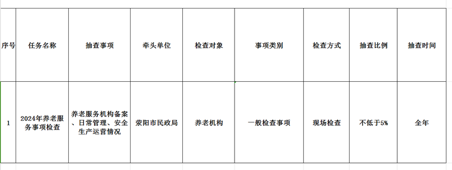 荥阳市民政局(养老服务)2024年“双随机、一公开”抽查计划