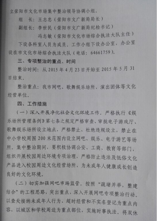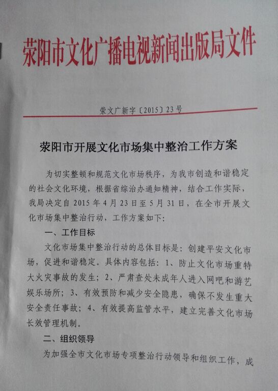 荥文广新字【2015】23号 荥阳市开展文化市场集中整治工作方案