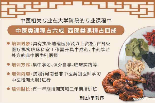 据悉,培训通过集中学习、课外自学、临床实践等方式进行,内容按照《河南省非中医类别医师学习中医培训大纲》进行,分为一年期培训班和二年期培训班。