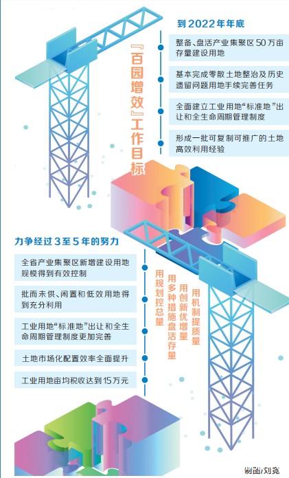一是到2022年年底,整备、盘活产业集聚区50万亩存量建设用地,基本完成零散土地整治及历史遗留问题用地手续完善任务,全面建立工业用地“标准地”出让和全生命周期管理制度,形成一批可复制可推广的土地高效利用经验。