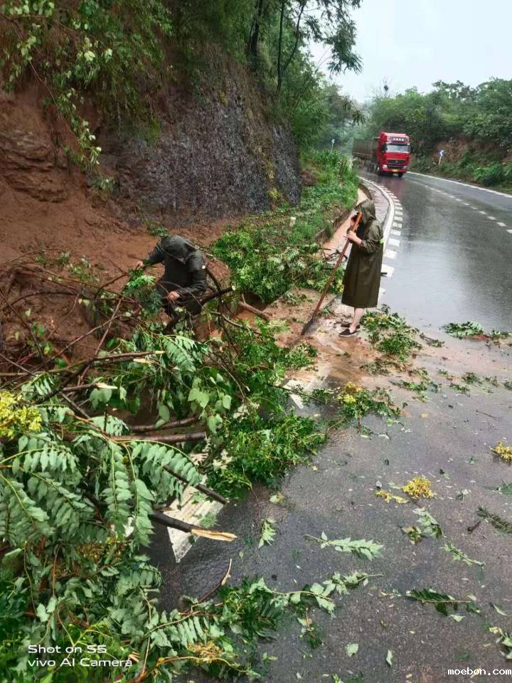 该局启动防汛抢险紧急预案,风雨逆行全员上阵,奔赴灾情紧急区位,对涉灾的公路、桥梁等重点部位开展抢险救灾工作。精心组织的数支公路抢修队伍,发扬连续作战作风,勇挑重担争先锋,愈是艰险愈向前,奋战在防汛抢险一线。或是疏通桥梁排水口、清理塌方后路面石块,或是挪走路边被刮倒的树木、用铲车推开泥石流带下的山泥,将公路损毁程度降到最低,或是在沉陷、塌方处摆放安全标、警示牌和沙袋,对积水严重的路段实施断行,冒雨指挥过往车辆安全通行,同时调集发电机、水泵等设备,有条不紊地开展抽排作业,尽快恢复道路畅通。