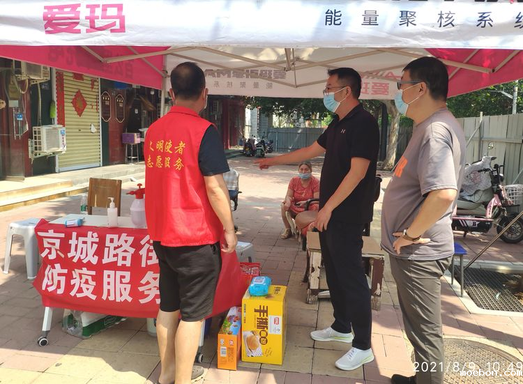 8月9日上午,排管中心主任夏旭凯来到卡点督导执勤工作,为执勤人员送来酒精、免洗洗手液、面包等执勤保障物品,并在小区出入口多处张贴健康码、行程码,方便居民快速扫码进出。夏旭凯指出,阳光苑属我市老旧小区,居民多为老年人,执勤人员一定要耐心、细心的帮助老年人扫码,不能扫码的要落实登记,做好疫情防控宣传工作。同时强调,无物业小区是疫情防控的薄弱环节,执勤时一定要坚定扛牢疫情防控责任,克服一切侥幸心理,切实织密织牢疫情防护网。