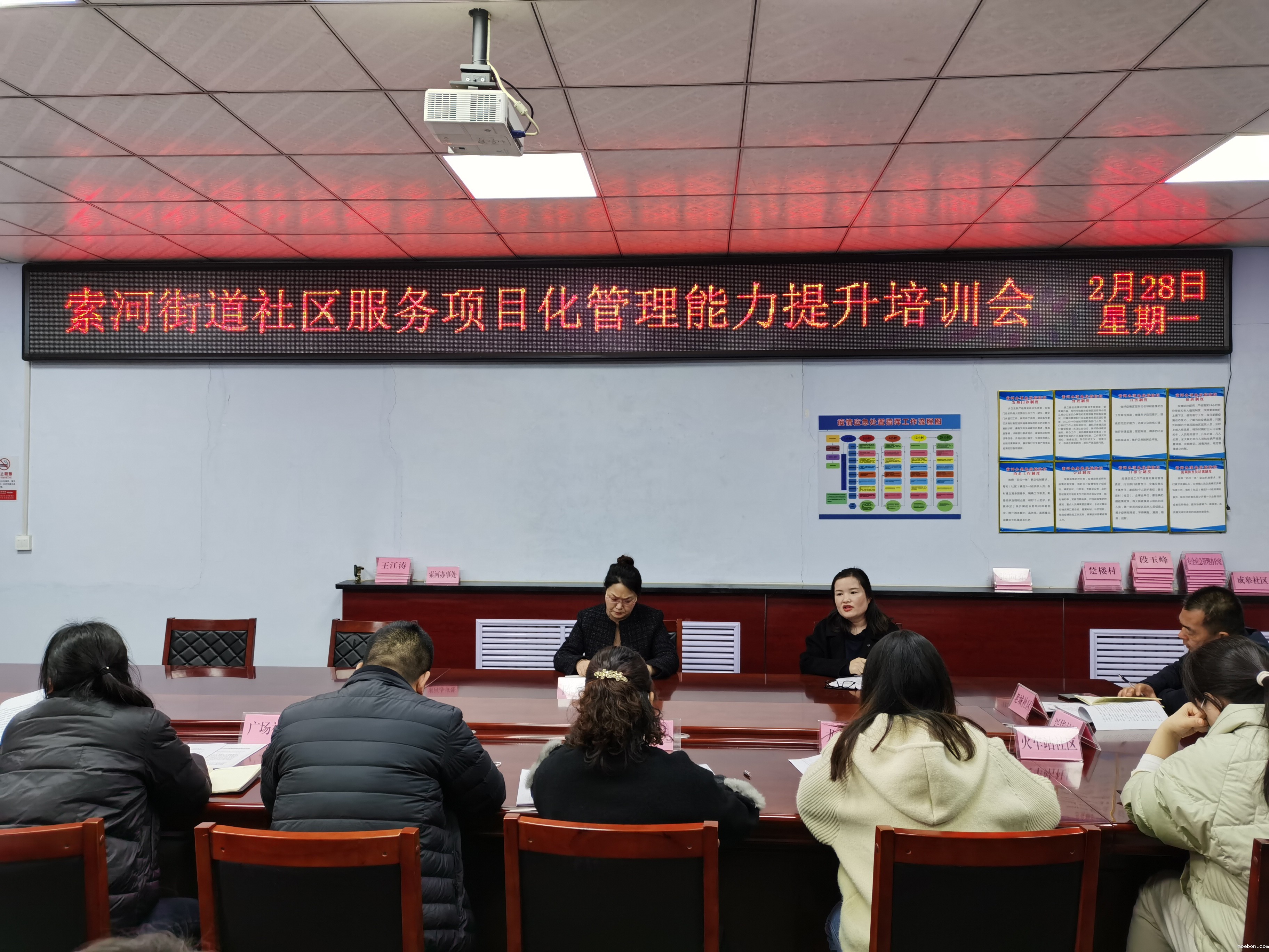 为积极推进社区服务专业化、精细化,扩大服务覆盖面,激发社区居民群众发挥主体作用参与社区发展治理的热情和积极性,2月28日下午,索河街道召开社区服务项目化管理能力提升培训会,街道社区服务中心、各社区书记及社区业务骨干共20余人参加本次会议。