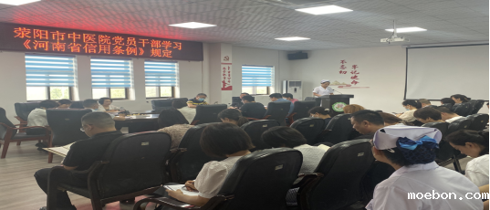 为进一步做好当前社会信用体系建设宣教工作,全面落实《河南省社会信用条例》学习宣传贯彻工作,9月12日荥阳市中医院组织党员干部利用行政例会继续学习。
