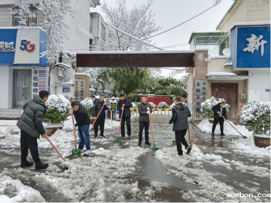 瑞雪兆丰年,神州万象新。12月11日凌晨,荥阳市普降大雪,市区积雪严重,道路淤堵,树木折断。荥阳市商务局积极响应市委组织部《关于在低温雨雪冰冻天气中充分发挥基层党组织战斗堡垒作用和广大党员先锋模范作用的通知》和创建办下发的紧急通知,为保障广大群众的出行安全,确保道路通畅。迅速组织全局干部职工,党员志愿者队伍开展集体扫雪除冰志愿服务活动,全力确保分包路长工程路段区域及单位周边区域道路畅通。