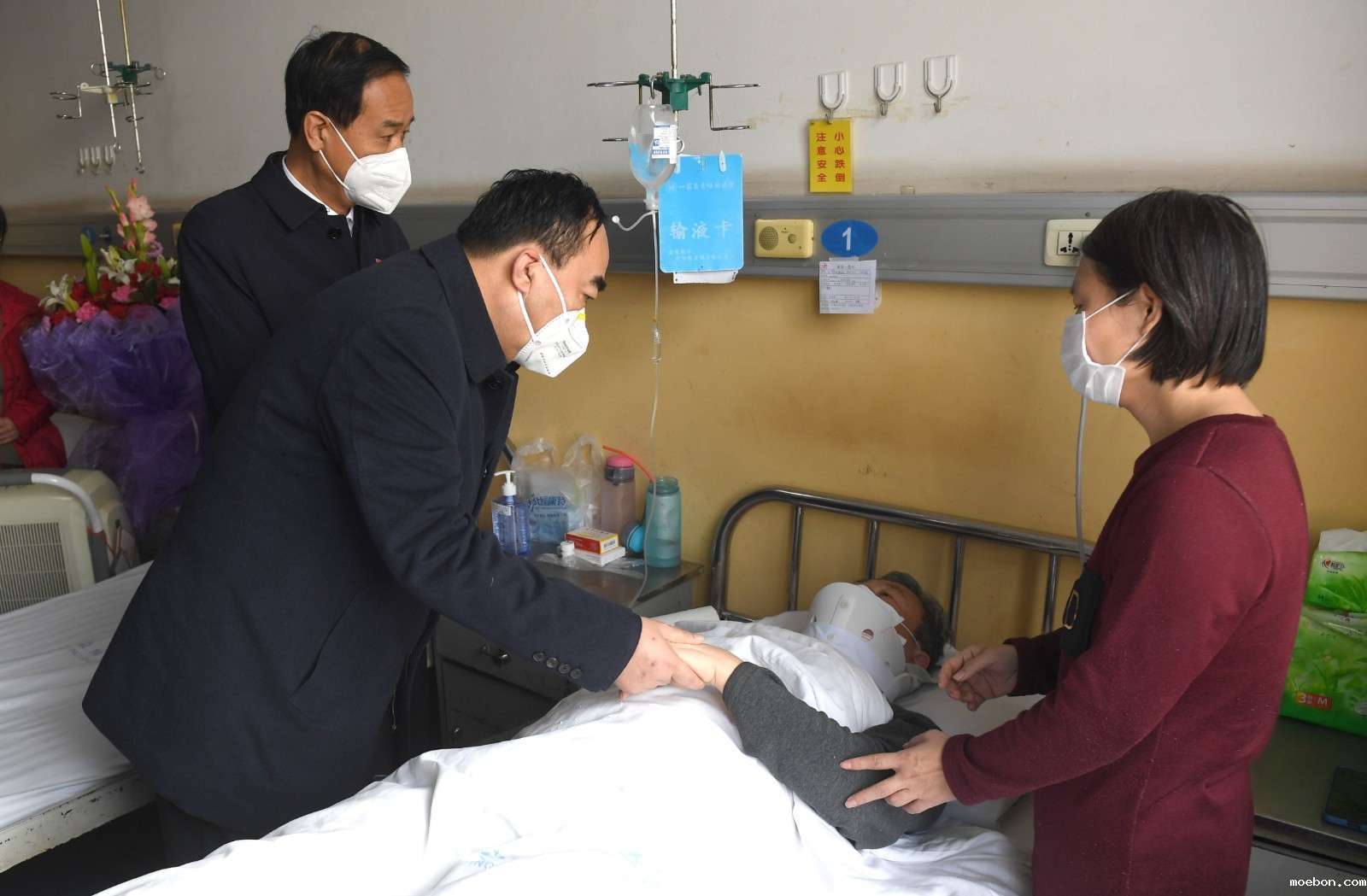 随后,于东辉、马义中一行来到荥阳市人民医院,详细了解了因公受伤的崔立志同志的伤势情况和治疗情况,叮嘱他注意休息、安心养病,并送上了慰问品和慰问金。嘱托医院相关负责同志要提供最好的环境、用最好的设备、最好的技术全力进行救治。