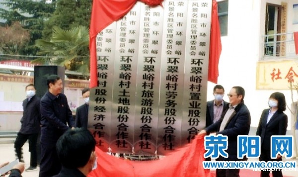 最后,王效光和卢水生共同为环翠峪村五大股份合作社揭牌。