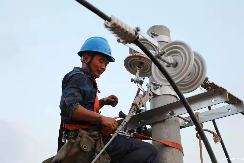 2.2吨的架空绝缘线,长约2000多米,定位、挖坑、立杆、安装金具、瓷瓶、放线、拉线,工人们要一点一点的用牵引绳拉到15米的空中,15个小时,厚厚的工作服从来没干过,已经被汗水浸湿了颜色。