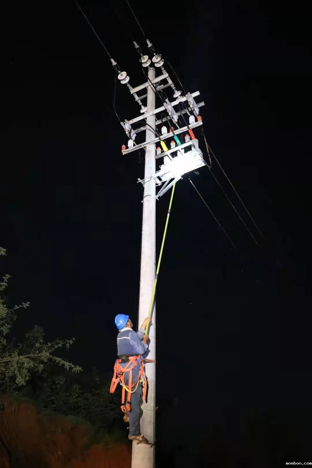 “我中午12点半就上到杆上开始作业”。正在固定架空绝缘线的吴启运,和站在高空作业车工作台上的记者,只相隔了一米距离,但他忙的连头都顾不上抬。“今天晚上九点,我们必须把电送上”。
