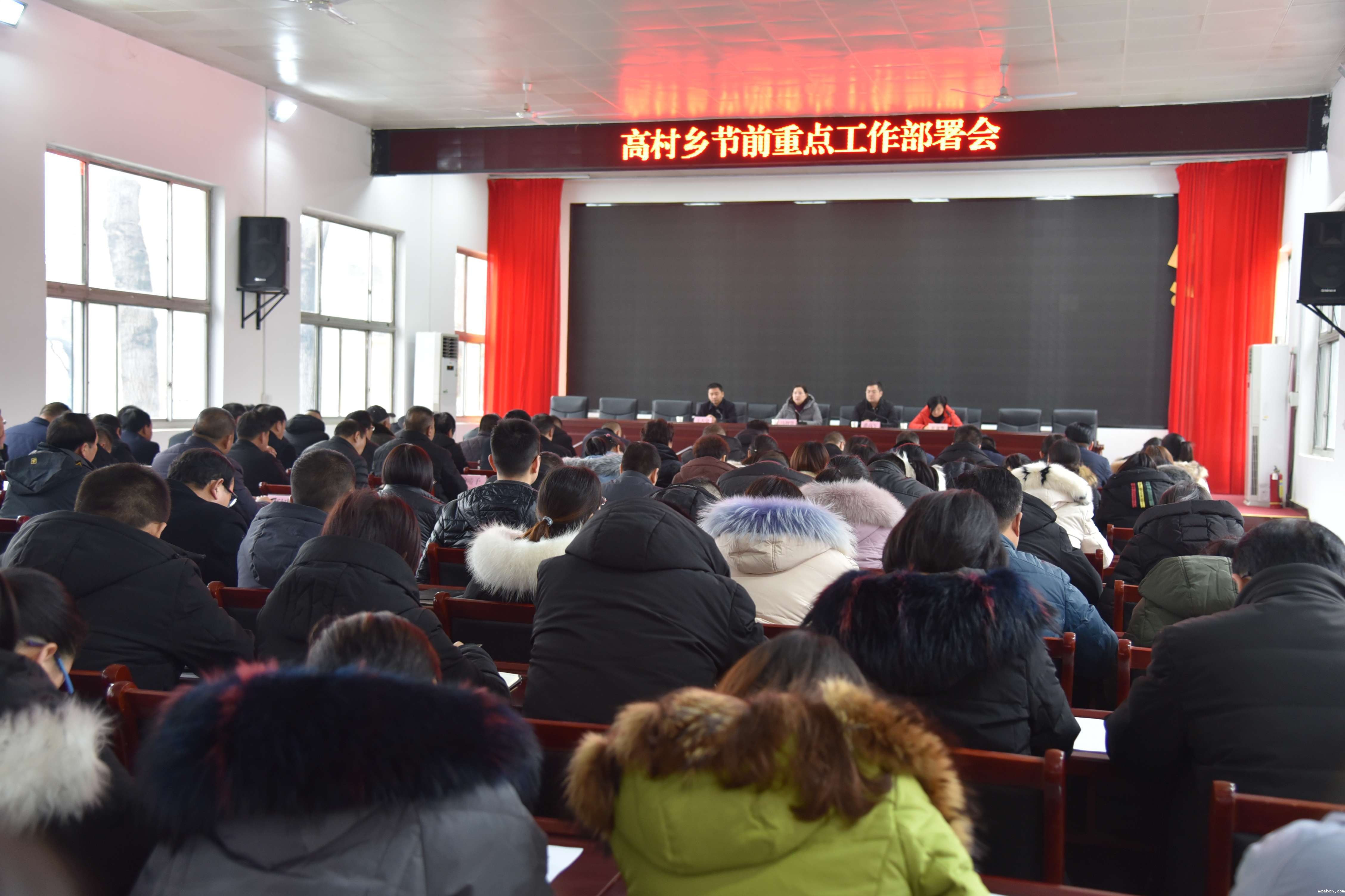 1月9日上午,高村乡召开节前重点工作部署会,为确保高质量完成节前各项目标任务再加油、再鼓劲。乡党政领导班子成员、全体机关干部、各村支部书记、主任、乡直部门负责人参加了会议。