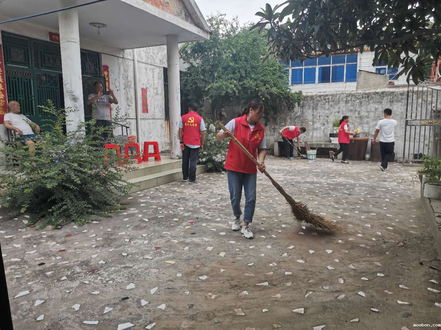 党员志愿服务队又为他们打扫了庭院卫生