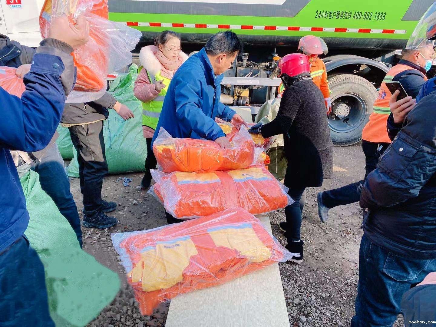 “听说今年冬天会特别冷,这棉袄可真暖和,感谢领导对我们的关心,这个冬天再也不怕冷了。”领到棉袄后,环卫工宋彩云一边试穿一边笑着说。