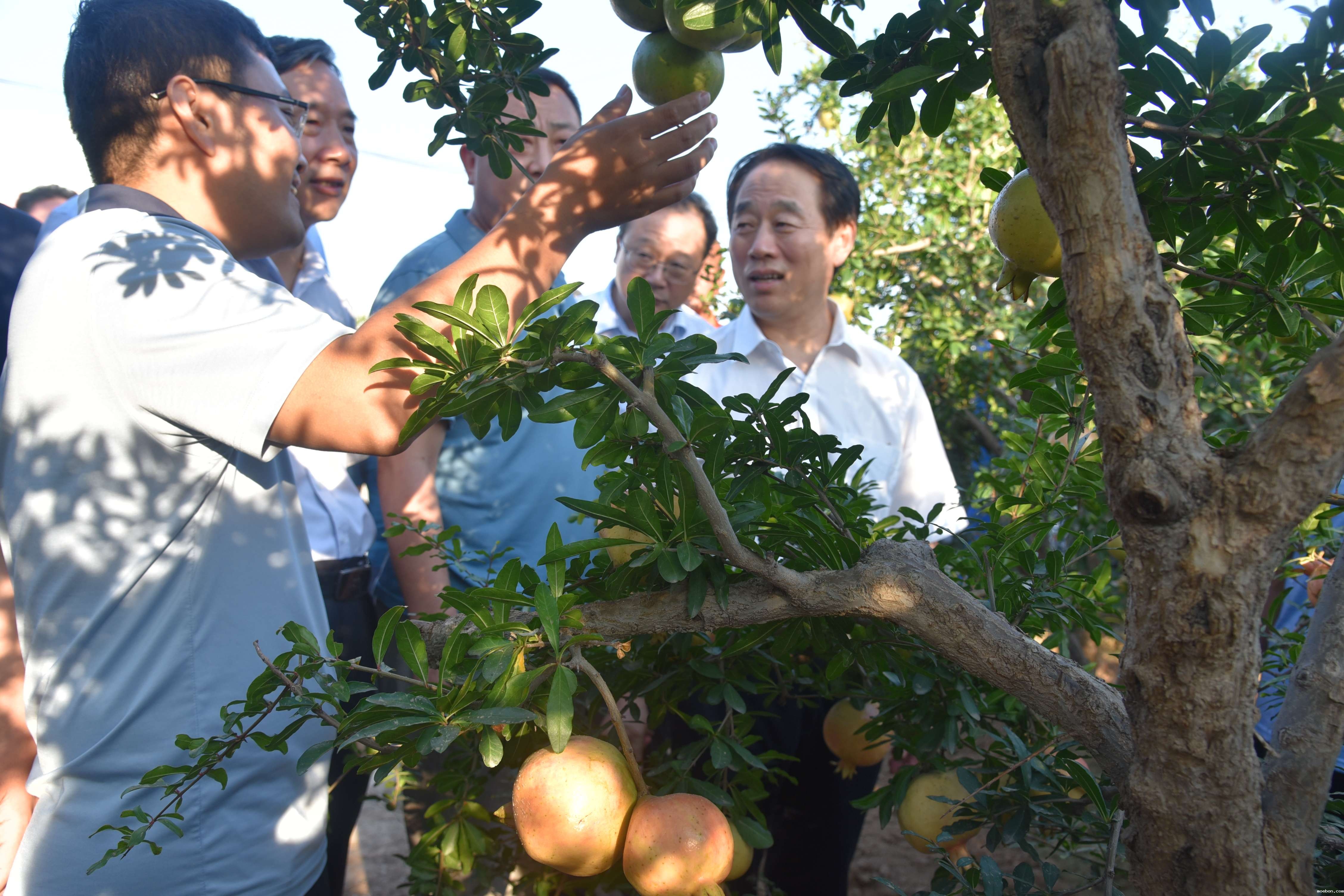 河南省政协副主席、九三学社河南省委主委张亚忠与石榴种植户们共同听取了讲座,到石榴种植园里实地查看了河阴石榴产业发展和种植收益等情况,在河阴石榴文化展馆里了解了河阴石榴的历史和刘沟村的脱贫致富路。