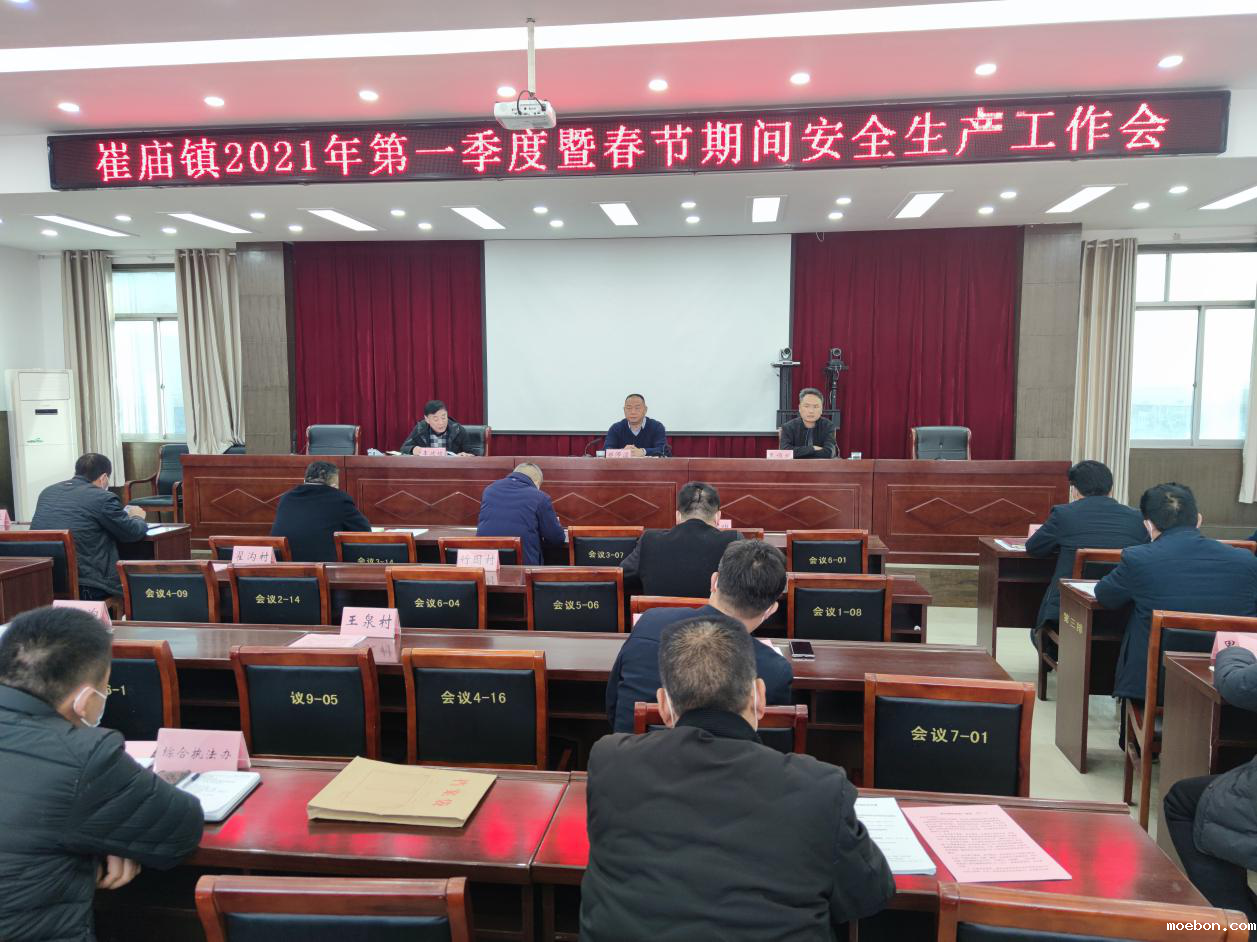 近日,崔庙镇召开2021年第一季度暨春节期间安全生产工作会,崔庙镇机关中层以上干部、各村支部书记参加会议。
