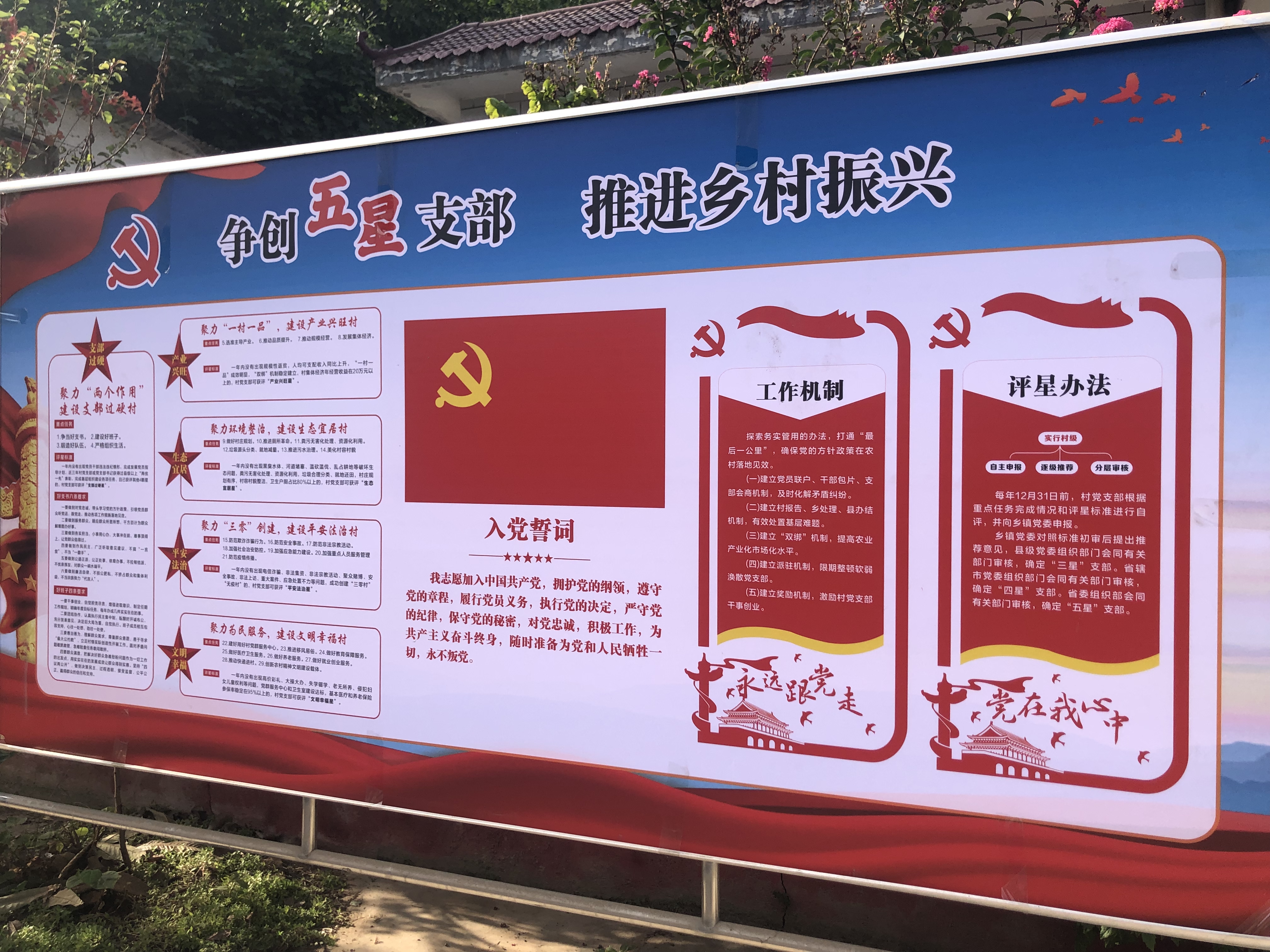 氛围打造,让“支部过硬星”形象亮起来。多村的室外墙体正在旧貌换新颜,红色美工字体的“创建‘五星’支部,推进乡村振兴”的标语格外夺目。崔庙镇通过在各村党群服务中心增加党建元素,以“党建文化墙”的形式开辟党建文化宣传阵地,直观醒目、过目不忘;LED屏展示、宣传版面、乡村云广播、党员微信群等多种方式辅助强化“五星”支部建设宣传,让“五星”的创建内容入心入脑,营造“人人知道创‘五星’、人人参与创‘五星’”的浓厚氛围。崔庙镇顺应新时代发展潮流,创新打造王宗店新村、石坡村等党建综合体,把村级便民服务站、文化娱乐场所、医疗养老机构等加以整合,放眼全局,打造功能齐全、服务高效的党建综合平台,为“五星”支部创建夯实阵地基础。