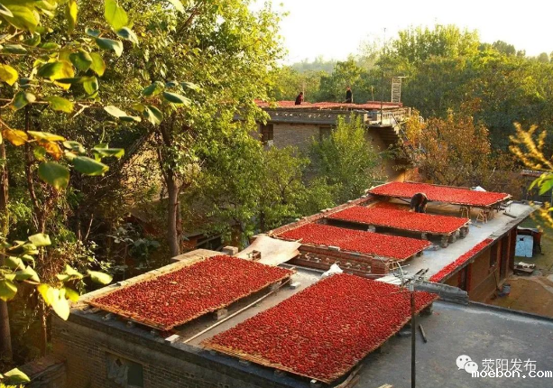 霜叶随风去,枝头挂柿红。深秋时节,笔者来到荥阳市郑岗村,放眼望去,只见田间地头、沟沟峁峁,红彤彤的柿子挂满枝头,摘柿子、晒柿子、削柿皮成为山村的一道风景。