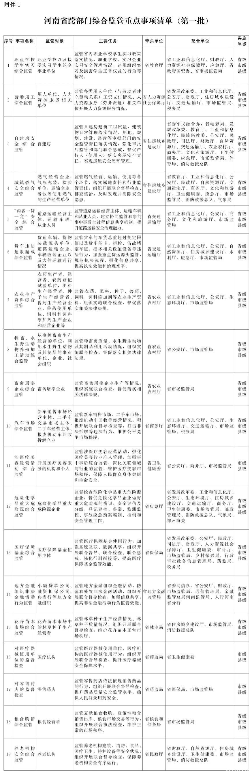1.河南省跨部门综合监管重点事项清单(第一批)
