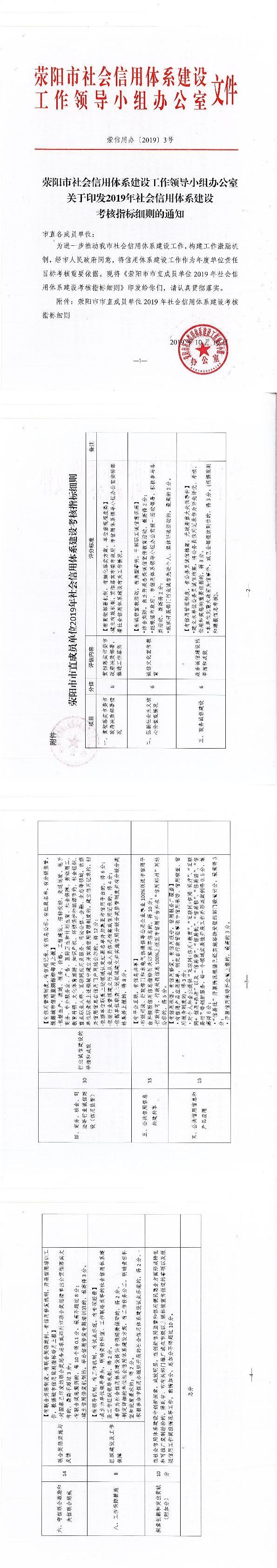 荥阳市社会信用体系建设工作领导小组办公室关于印发2019年社会信用体系建设考核指标细则的通知